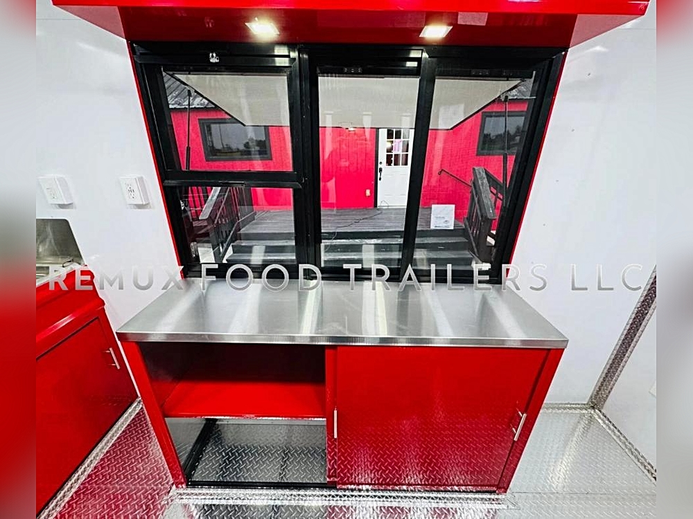14x8x7Capacity: 3,500lb Double Axel 5 Lug Nuts (7,000 total)1 Concession Window 6ft w/serving tableOverhead Storage 6ftDiamond-Plated FloorsTrash Bin w/stainless work…