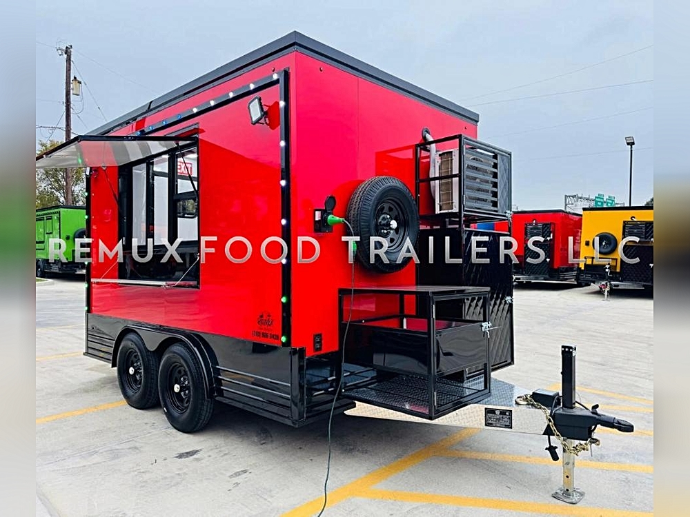 12x8x7Capacity: 3,500lb Double Axel 5 Lug Nuts (7,000 total)1 Concession Window 6ft w/serving tableOverhead Storage 6ftDiamond-Plated FloorsTrash Bin w/stainless work…