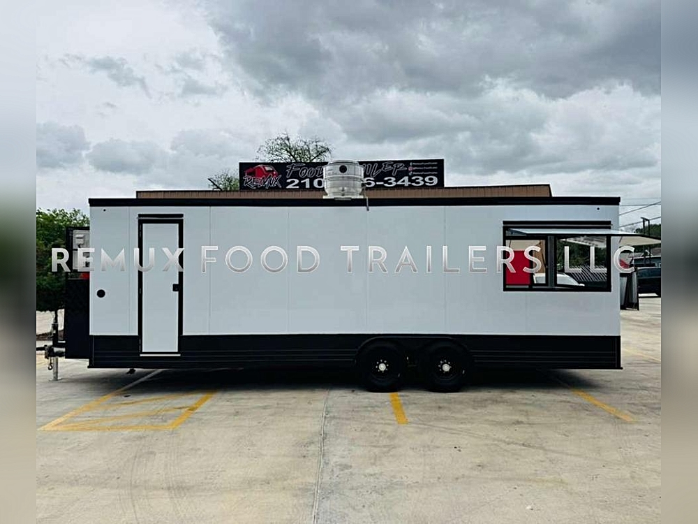 24x8x7Capacity: 7,000lb Double Axel 8 Lug Nuts (14,000 total)1 Concession Window 6ft w/serving tableOverhead Storage 6ft3 Compartment Sink+ Hand Sink…